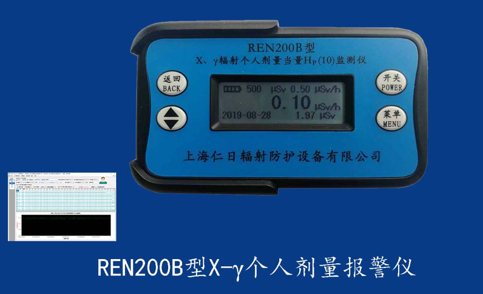 REN500H 輻射測量儀REN500H輻射防護用X、γ輻射劑量當量(率)儀是監測各種高劑量放射性工作場所的輻射劑量率專用儀器。儀器滿足《環境地表γ輻射劑量率測定規范》中高劑量部分的要求。該儀器除能測高能γ射線外,還能對低能X射線進行準確的測量,具有良好的能量響應特性。此外通過配套的RenRiRate輻射劑量管理軟件可將存儲的數據讀出后分析。該儀器廣泛用于環保、醫院、疾控、冶金、石油化工、化工、衛生防疫、工業探傷、放射性試驗室、Xray裝置、加速器、各種放射性工作場所等需進行高輻射劑量檢測的場合。REN500H輻射防護用X、γ輻射劑量當量(率)儀標配的RenRiRate輻射劑量管理軟件功能特點:1、寬測